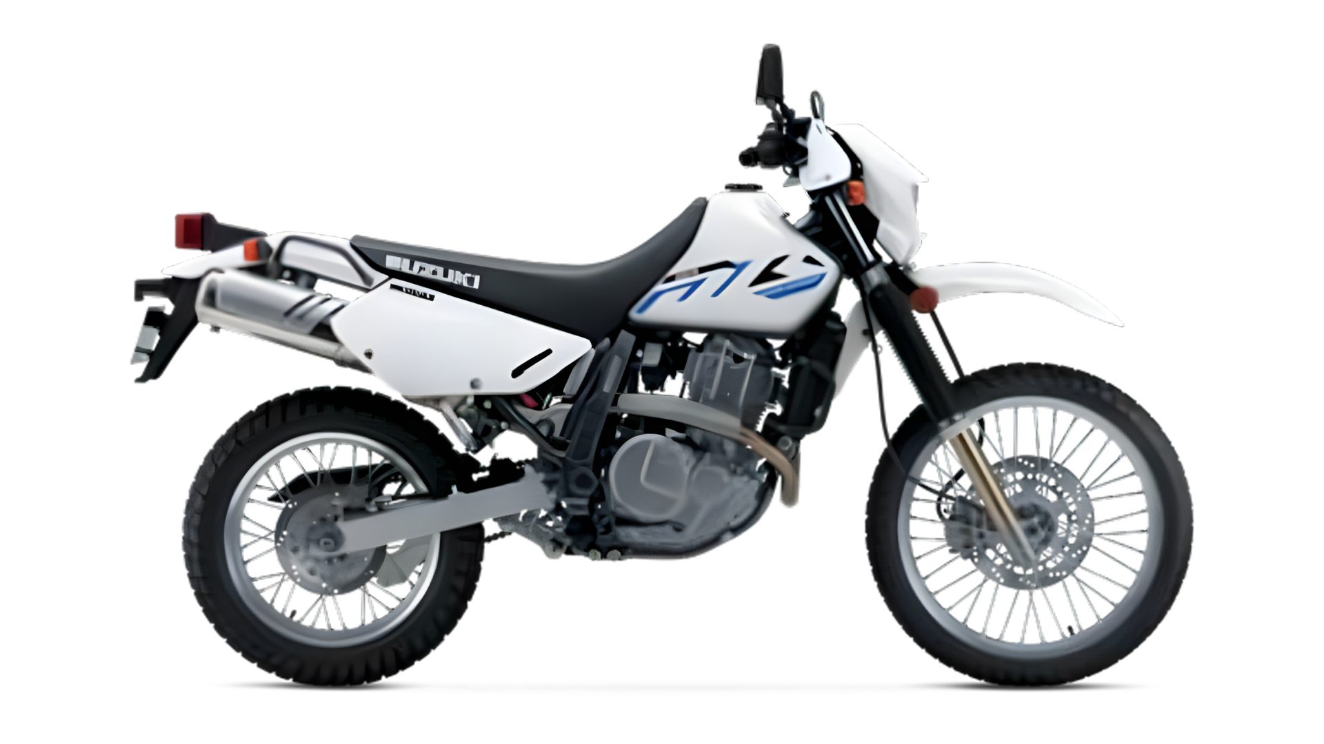With Solid Black and Solid Gray or bright Solid Special White No. 2 bodywork that features distinctive blue and black graphics, the DR650S looks good when ridden on any surface. A long, comfortable seat, aluminum footpegs, and grab handles allow the rider to carry a passenger with ease.